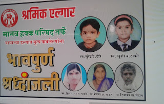 Banner in remembrance of tiger victims at Manav Hakka Parishad, village Halda, Brahmapuri, 2019